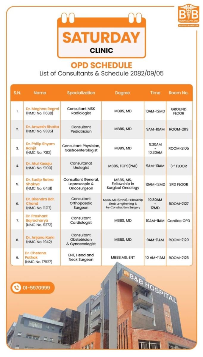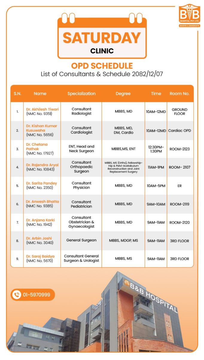 In our unwavering commitment to providing exceptional care to our valued patients, we are thrilled to announce that we have expanded our outpatient department (OPD) services to include Saturdays. This decision reflects our dedication to enhancing accessibility and convenience for all those who rely on our healthcare facilities.