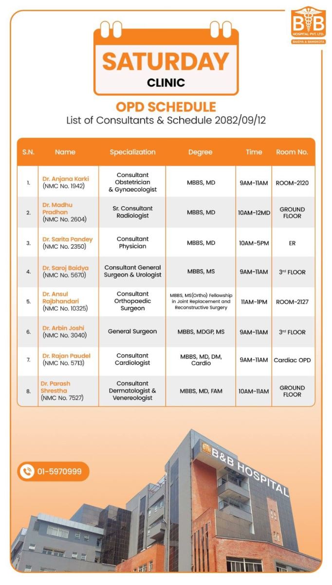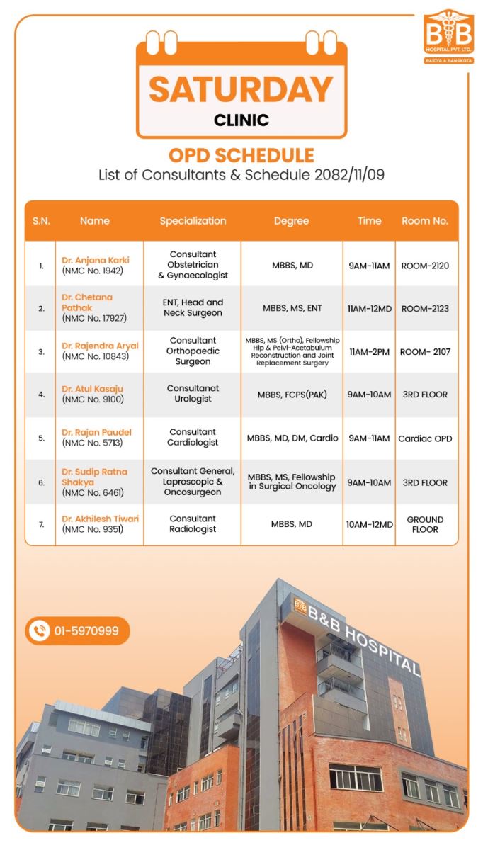 In our unwavering commitment to providing exceptional care to our valued patients, we are thrilled to announce that we have expanded our outpatient department (OPD) services to include Saturdays. This decision reflects our dedication to enhancing accessibility and convenience for all those who rely on our healthcare facilities.